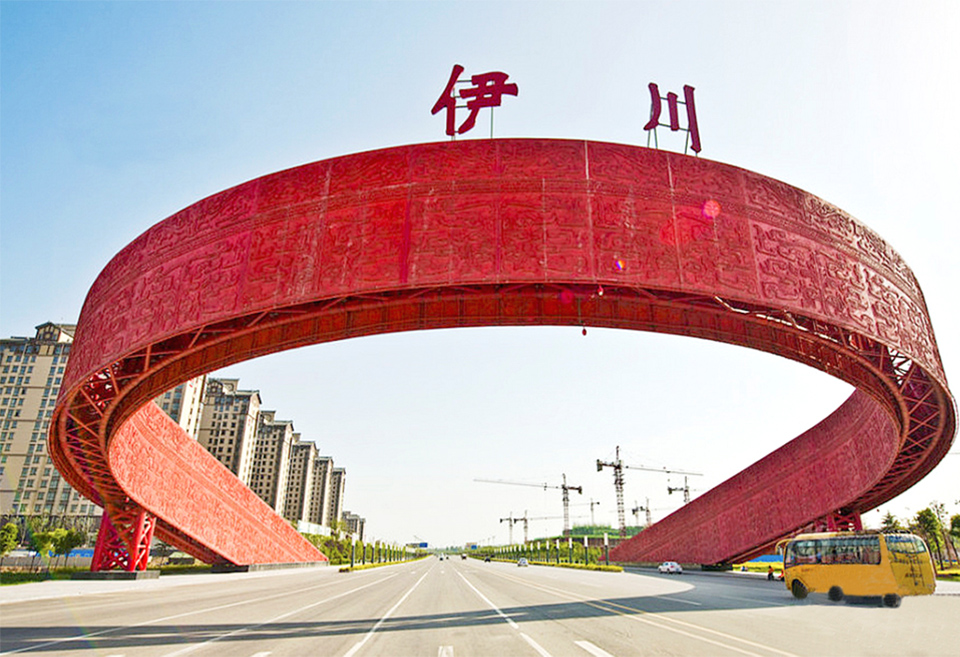 伊川縣北出入口(北大門)工程,位于伊川縣北出入口,本工程為鋼結(jié)構(gòu)體系(復(fù)雜大跨空間鋼結(jié)構(gòu)),整體跨度66米。工程于2012年11月30日開工,2014年5月10日竣工驗(yàn)收。
