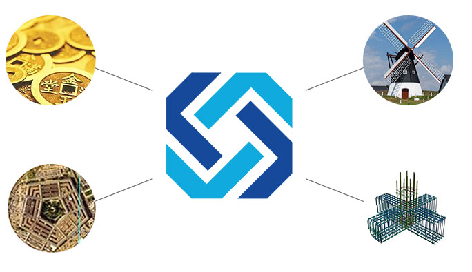 標(biāo)志的整體形象似車輪、像風(fēng)車、如錢幣,象征著企業(yè)順風(fēng)順?biāo)?、不斷前進(jìn)、財(cái)源滾滾。